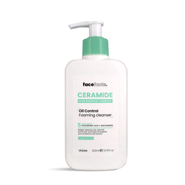 The Face Facts Ceramide Oil Control Foaming Cleanser is a vegan-friendly, and effective cleanser for oily, combination, and acne-prone skin. Reviews frequently highlight its ability to remove excess oil and impurities without stripping the skin, leaving it feeling balanced and hydrated due to 5 ceramides, hyaluronic acid, and niacinamide.