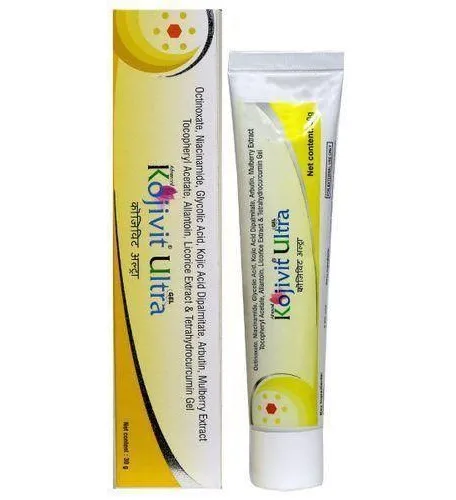 Kojivit Ultra Gel is a dermatological cream designed to treat hyperpigmentation, melasma, and dark spots, featuring active ingredients like Kojic Acid, Arbutin, and Glycolic Acid.