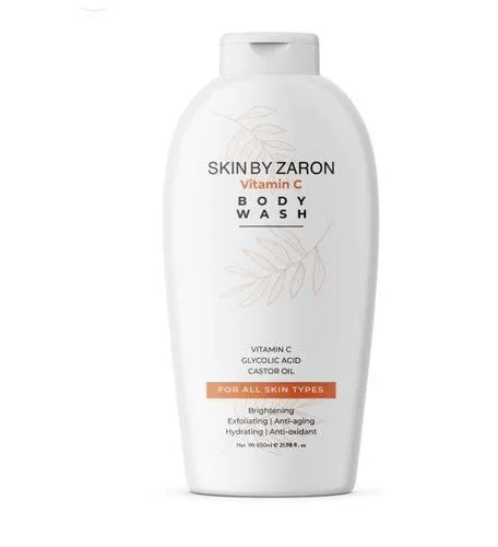 Skin by Zaron Vitamin C Body Wash is a 650ml nourishing, creamy cleanser designed to brighten, exfoliate, and hydrate skin using Vitamin C, Glycolic Acid, and Castor Oil. It removes impurities, fights free radicals to reduce dullness, and improves skin texture for a smoother, healthier appearance.The formula is suitable for all skin types and helps soothe and moisturize.